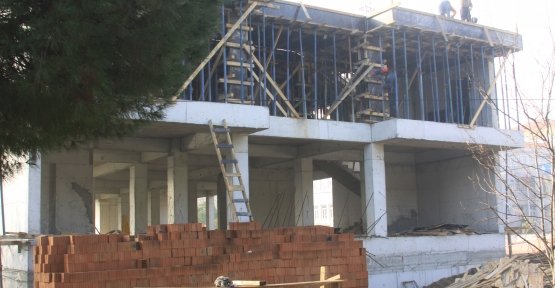 Manisa’nın Saruhanlı ilçesinde 2 ay önce temeli atılan Vergi Dairesi yeni hizmet binasının, kaba inşaatının tamamlanmak üzere olduğu öğrenildi.
