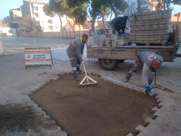 Alaşehir Belediyesi tarafından Örnekköy Mahallesi’nde kilit parke, döşeme, meydan düzenlemesi, soğuk asfalt çalışmaları yürütülürken; Horzumsazdere Mahallesi’nde de 10 bin metrekare kilit parke döşeme, yol açma çalışmaları yapıldı. Ayrıca belediye ekipleri Işıklar Mahallesi’nde 14 bin metrekare kilit parke döşemesi ve park düzenlemesi ve Uluderbent Mahallesi’nde büz döşeme çalışmaları ile yol açma çalışmaları yaptı. Delemenler Mahalle’sinde menfez çalışmaları yapan ekipler, Göbekli Mahalle’sinde yol tesviye çalışmaları, Osmaniye Mahalle’sinde de düğün salonunun etrafına kilit parke döşeme çalışmaları ve düğün salonunun etrafına tel çit çekildi. İstasyon Mahalle’sinde engelli vatandaşların araçları için park alanı düzenlemesi yapan ekipler, Bülent Ecevit Meydanı'nın tabela montajı da yaparak çevre düzenlemesini gerçekleştirdi. Öte yandan Alaşehir Belediyesi tarafından çöp konteynerlerinin tamir ve bakımları da yapıldı.