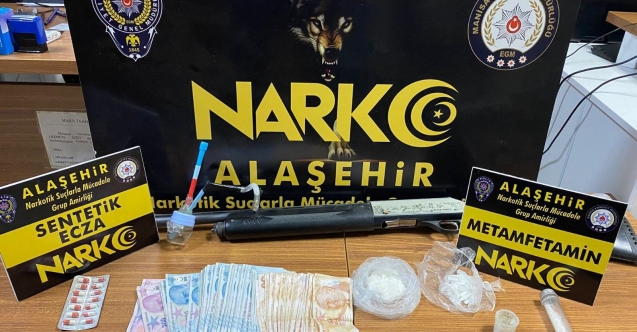 Manisa İl Emniyet Müdürlüğü Alaşehir Narkotik Suçlarla Mücadele Grup Amirliği ekipleri ekipleri tarafından uyuşturucu operasyonu düzenlendi. İlçede takibe alınan araç içerisinde ve şahısların kaldıkları otelde yapılan aramalarda 96,51 gram metamfetamin maddesi, 15 adet sentetik ecza, 1 adet ruhsatsız av tüfeği, 1 adet uyuşturucu madde kullanmaya yarayan aparat, 9 bin 850 TL uyuşturucu madde ticaretinden elde edildiği değerlendirilen para ele geçirildi.