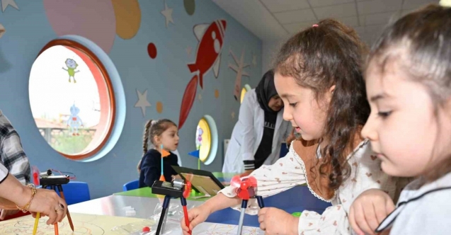 Kaymakam Fatih Bayram ve Başkan Erkan Kara çocuklarla etkinlik masalarında robotik kodlama ve diğer çalışmaları birlikte gerçekleştirdi.
