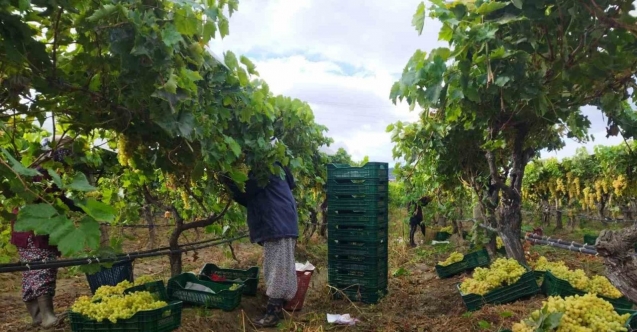 Sarıgöl ovasının dünyaca ünlü çekirdeksiz sofralık Sultaniye üzüm bağlarında iki gündür devam eden yağışlara rağmen kesim işleri aralıksız devam ediyor. Sabahın erken saatlerinde yola çıkan tarım işçileri yaş olan üzüm bağının içerisinde ayaklarına çizme veya bot giyerek kesim ve kamyona yükleme işlerini tamamlıyorlar. Zor şartlara rağmen üzüm hasadını sürdüklerini belirten tarım işçisi Raziye Esmeray, "İşçi için verilmiş günümüz var. Ayrıca sıkıca giyinerek çalışmalarımızı aksatmıyoruz" dedi.
