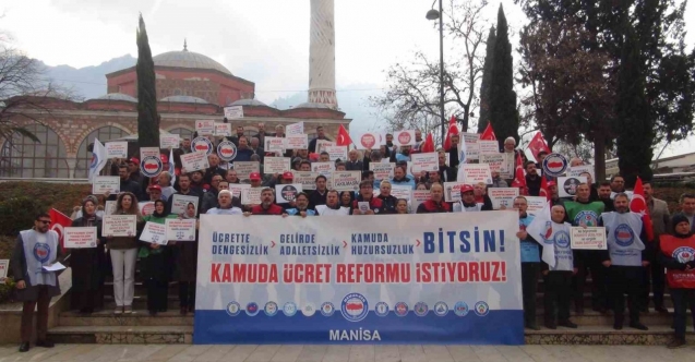 Memur-Sen Manisa İl Temsilcisi ve Eğitim Bir Sen Manisa 1 Nolu Şube Başkanı Ahmet Yasav, 2026 yılının memurlar için ilk maaş gününde Hatuniye Camii önünde basın açıklaması yaptı. Açıklamaya Memur-Sen’e bağlı sendikaların il başkanları, temsilcileri ve çok sayıda üye destek verdi.
