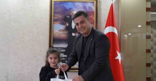 İl Müdürü Yunus Öztürk, Deniz Erol’u; babası Ömer Faruk Erol, annesi Seda Solmaz Erol ve öğretmeni İpek Alpakın ile birlikte kabul etti.