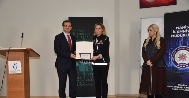 Manisa’nın Salihli ilçesinde üniversite öğrencilerine yönelik düzenlenen seminerde siber suçlar, internet dolandırıcılığı ve kişisel veri güvenliği konuları ele alındı.