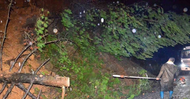 Yağış ağaçları devirdi, yol kısa sürede açıldı