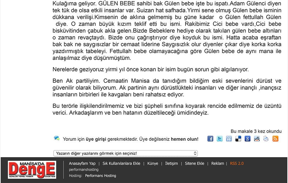 Köşe yazısının yayımlanmasından hemen sonra ise Denge Gazetesi ARif Bakkaloğlu'nun Cemaati öven köşe yazısını kaldırarak başka bir köşe yazısını yayıma verdi.