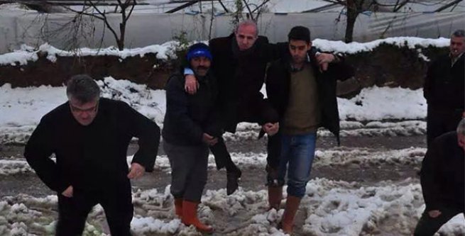 Kundra ayakkabı ile bölgede inceleme yapan Zurnacı’yı  yanındakiler omuzlarına aldı ve karşı tarafa geçirdi. Zurnacı’nın omuzlardaki görüntüleri ülke gündemine düştü.