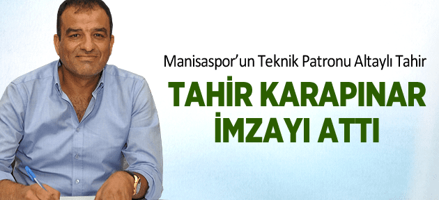 Manisaspor’da yönetimin belirlenmesinin ardından Kemal Özdeş’den boşalan teknik direktörlük koltuğuna yardımcısı Tahir Karapınar getirildi. Manisa 19 Mayıs Stadı’nda düzenlenen imza töreninde deneyimli teknik adam 1 yıllık imza attı.