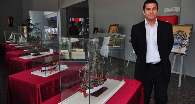 MANİSA Organize Sanayi Bölgesi'nde fabrika işçisi olarak çalışan Ercan Ersöz, mesaisinden arda kalan zamanlarında yaptığı model gemileri ve hat sanatı eserlerini, Kültür Merkezi Meclis Fuaye'de Manisalıların beğenisine sundu.